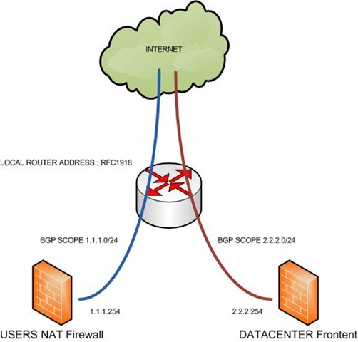 באותה פגישה דובר על לאחד תשתיות של DATACENTER עם תשתיות גלישה של משתמשים, עד כאן הכל טוב ויפה , הרצון לאחד שני שירותים לנתב ACCESS אחד , ולפרסם כתובות של הDATACENTER ושל כתובות המערכת שמבצעת NAT למשתמשים על אותה קופסא.